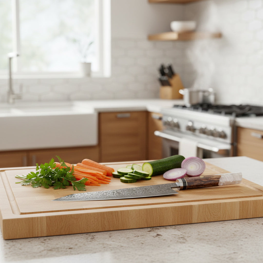 - Couteau kiritsuke tranchant comme un rasoir avec une lame de 23 centimètres.