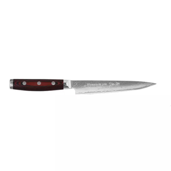Le Yaxell - Couteau à découper Super Gou 15 cm est un couteau de très haute qualité. La lame est constituée d'un noyau en acier dur SG2 HRC63 avec 80 couches d'acier sur 2 côtés. Ensemble, ils forment un motif damassé de 161 couches . Le couteau peut à juste titre être qualifié d'excellent.