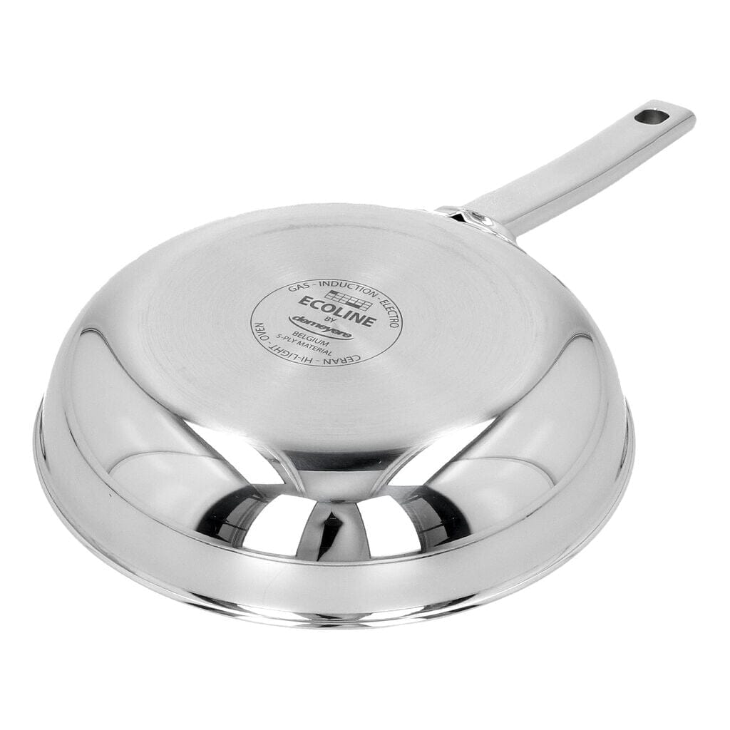 The handsome stainless steel Ecoline 5 frying pan (20 cm) from Demeyere is a joy to work with and delivers beautiful results. It fits comfortably in your hand and is constructed from 5-layer material, right up to the rim. This solid combination of alloys distributes heat effectively, allowing you to fry evenly and with control, even on a low setting.