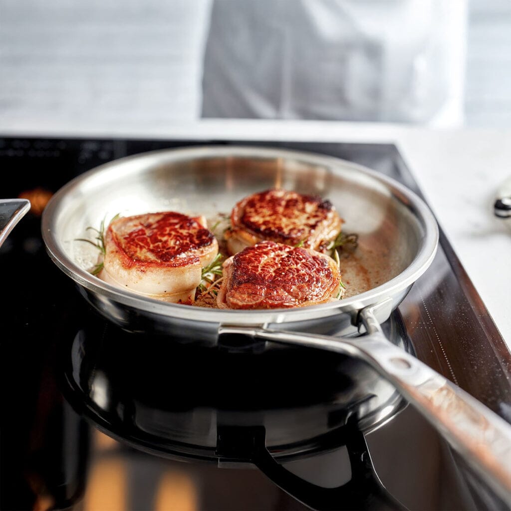 With the Demeyere Silver 7 24cm Frying Pan, you can easily prepare a succulent salmon fillet, a perfectly seared sirloin steak, or golden-brown roasted vegetables. Thanks to its 7-layer construction and Silvinox® technology , this pan always stays silvery-white and is easy to clean. Plus, you can cook up to 30% faster, more efficiently, and with greater control on induction thanks to TriplInduc® technology.